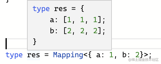 值的类型可以做变换,这里我们用之前索引类型的值 Obj[Key] 构造成了三个元素的元组类型 [Obj[Key], Obj[Key], Obj[Key]]: