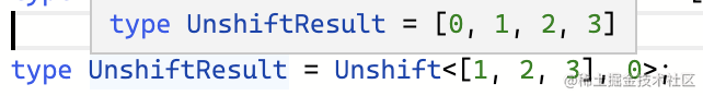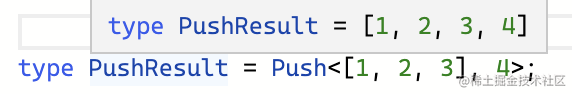 type Push<Arr extends unknown[], Ele> = [...Arr, Ele];类型参数 Arr 是要修改的数组/元组类型,元素的类型任意,也就是 unknown。