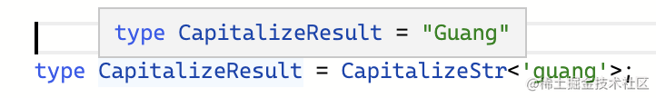 我们想把一个字符串字面量类型的 ‘guang’ 转为首字母大写的 ‘Guang’。