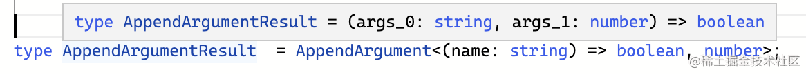 ? (...args: [...Args, Arg]) => ReturnType : never;类型参数 Func 是待处理的函数类型,通过 extends 约束为 Function,Arg 是要添加的参数类型。