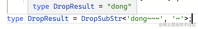 ? DropSubStr<`${Prefix}${Suffix}`, SubStr> : Str;类型参数 Str 是待处理的字符串, SubStr 是要删除的字符串,都通过 extends 约束为 string 类型。