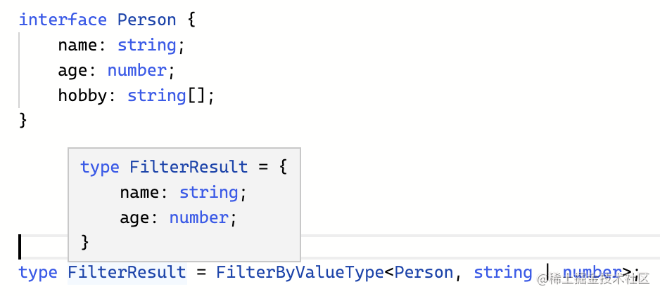 type GetValueType<P> = P extends Promise<infer Value> ? Value : never;类型参数用于接受具体的类型,在类型运算中也相当于局部变量: