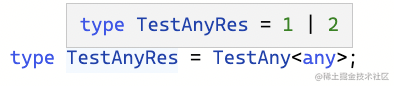 - any 作为类型参数出现在条件类型左侧时,会直接返回 trueType 和 falseType 的联合类型。