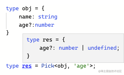 - 可选索引的索引可能没有,那 Pick 出来的就可能是 {},可以用来过滤可选索引,反过来也可以过滤非可选索引。