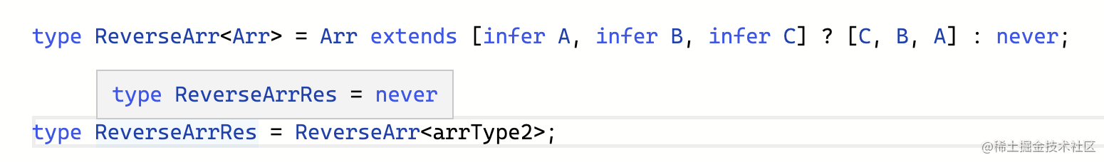 比如反转那个三个元素的元组类型,不加上 readonly 再匹配是匹配不出来的: