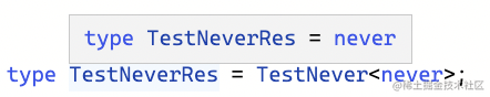 never 在条件类型中也比较特殊,如果条件类型左边是类型参数,并且传入的是 never,那么直接返回 never: