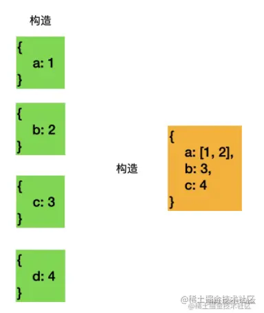 MegeValues 的合并逻辑就是如果两个值是同一个就返回一个,否则构造一个数组类型来合并: