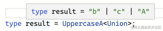 TypeScript 对联合类型做了特殊处理,当遇到字符串类型或者作为类型参数出现在条件类型左边的时候,会分散成单个的类型传入做计算,最后把计算结果合并为联合类型。