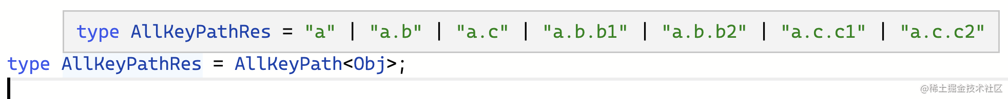 之后实现了 AllKeyPath 的类型,通过映射类型遍历 Key,用它来递归构造不同的 Path,最后取 value,就是结果。