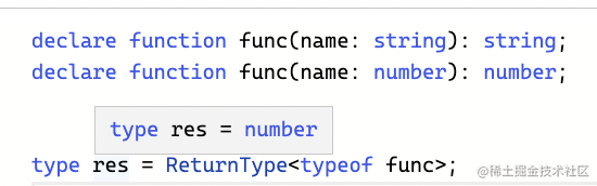 取重载函数的 ReturnType 返回的是最后一个重载的返回值类型。