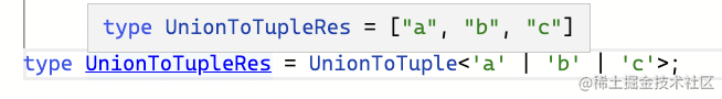 取到最后一个类型后,再用 Exclude 从联合类型中把它去掉,然后再同样的方式取最后一个类型,构造成元组类型返回,这样就达到了联合转元组的目的: