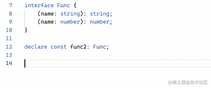 函数可以用 interface 的方式声明,同样,也可以用 interface 的方式声明函数重载: