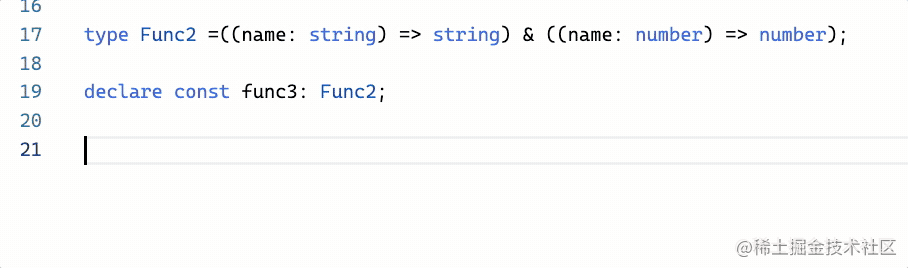 函数类型可以取交叉类型,也就是多种类型都可以,其实也是函数重载的意思: