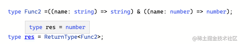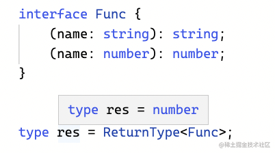 然后再通过 ReturnType 取返回值的类型,就取到了联合类型的最后一个类型: