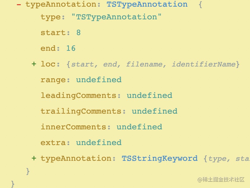 这个返回的类型是 TSTypeAnnotation 的一个对象,我们需要做下处理,转为类型字符串,也就是 string、number 这种。