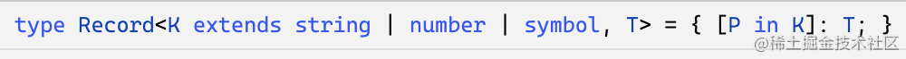 这个 Record 是一个内置的高级类型,作用是根据传入的 key 和 value 的类型生成索引类型: