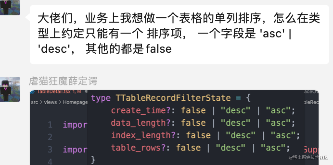 这俩都是项目中真实遇到的 TS 类型问题,我们一起看一下吧: