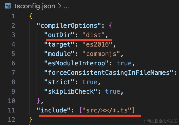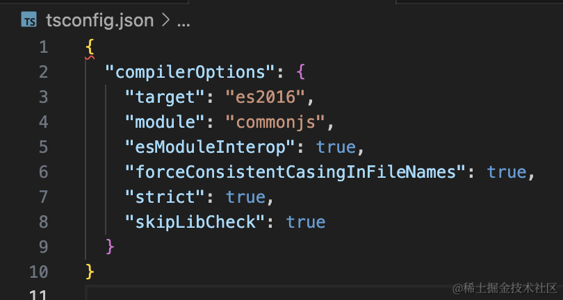 生成的 tscconfig.json 太多注释了,我们删一下: