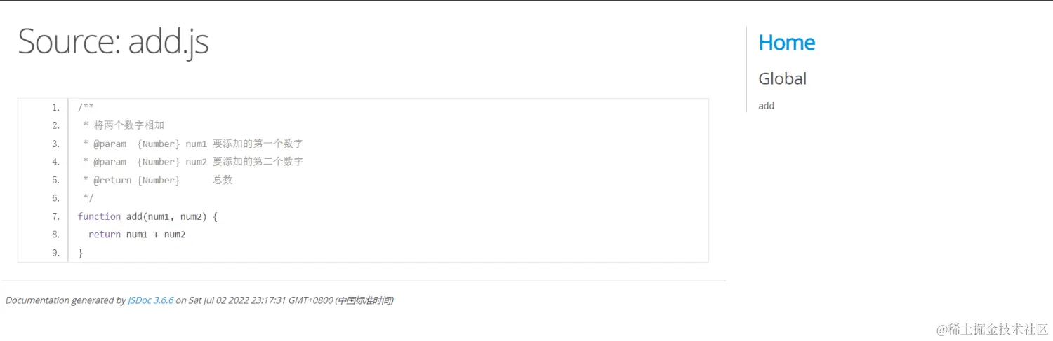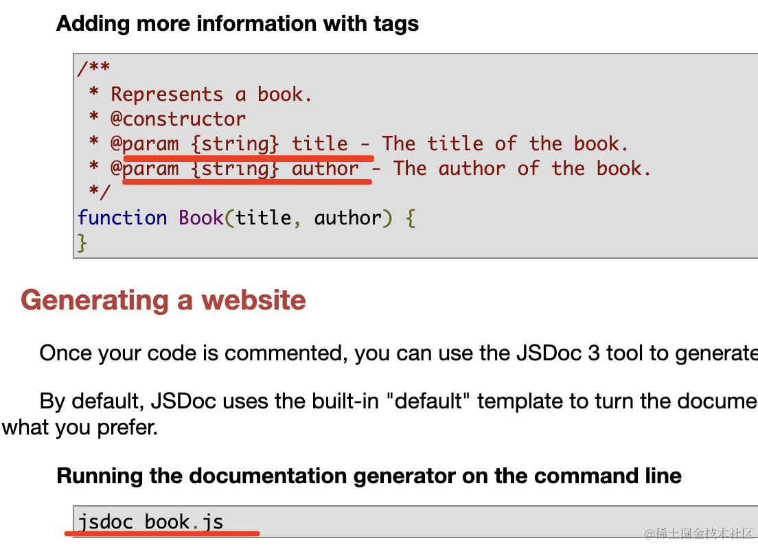 在代码的注释上加上类型的标识,然后通过 jsdoc 命令行工具,就可以直接生成文档。