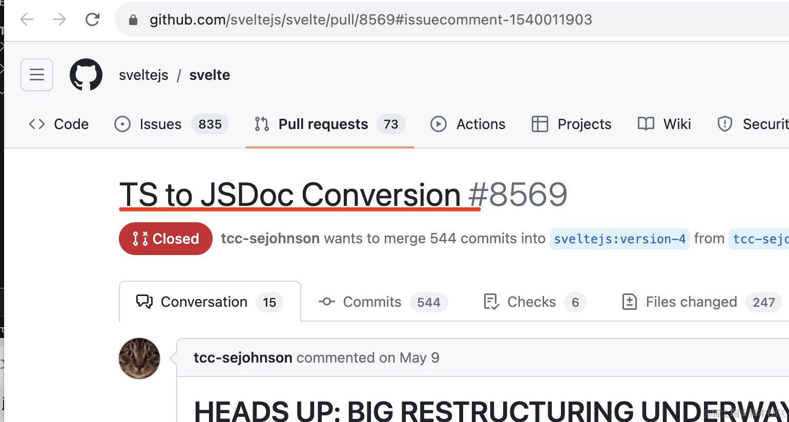 Svelte 弃用 TypeScript,改用 JSDoc 了。