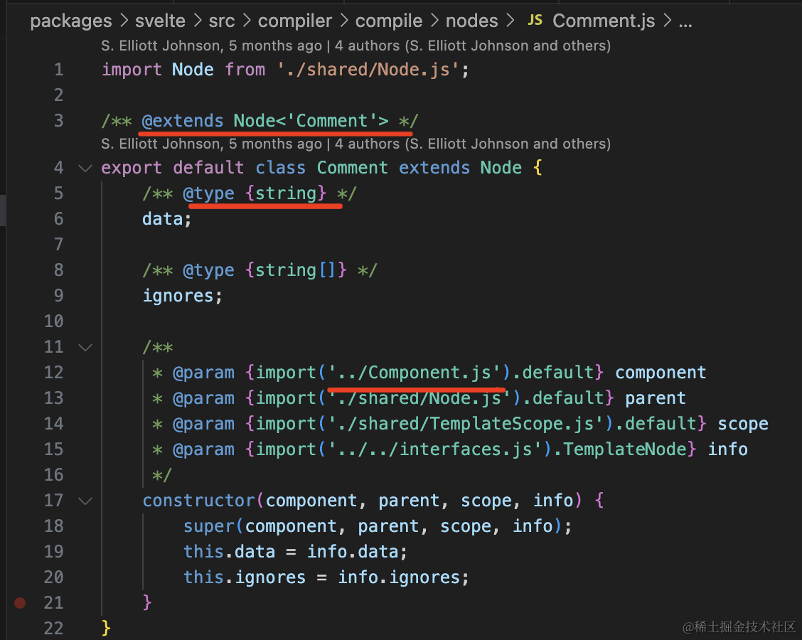 然后我们看了 svelte 选择 JSDoc 的原因,只是为了调试方便。这样不用编译就可以直接跑 js 代码,可以直接定位到源码。而且这样也能利用 ts 的类型提示和检查的能力。