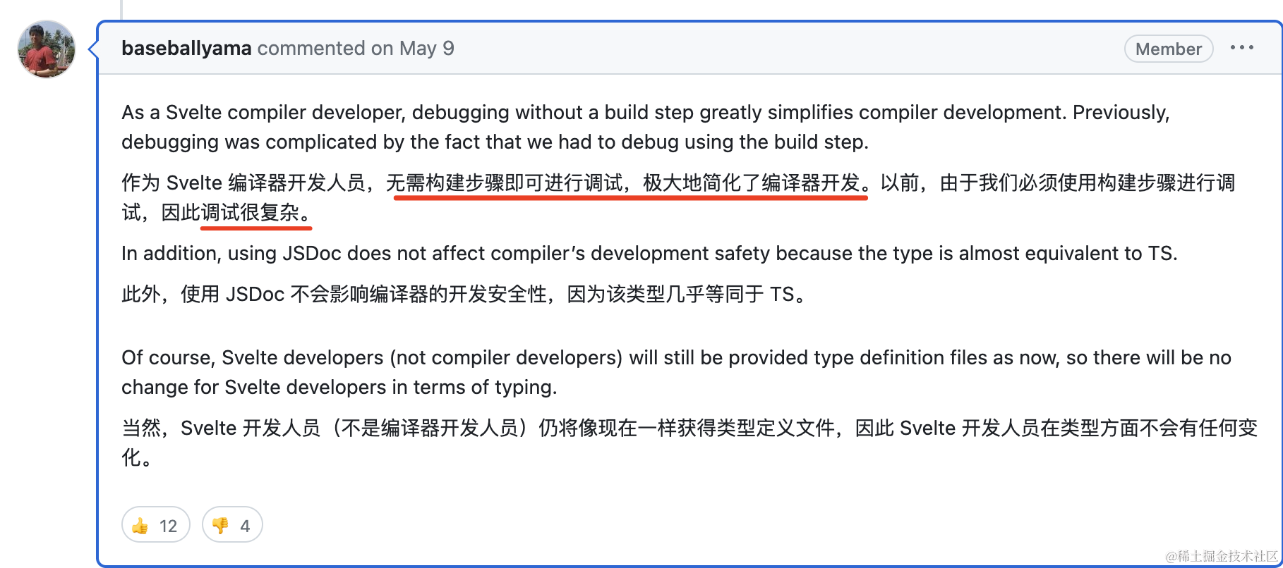 总之,svelte 选择从 ts 转成 JSDoc + dts 并不是因为 ts 有啥问题,主要是为了调试方便。