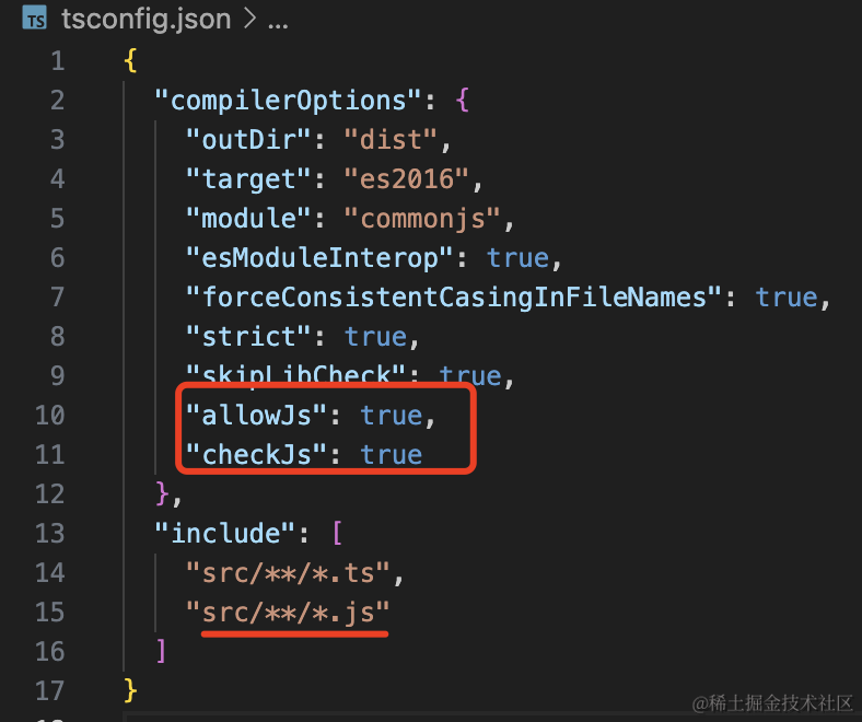 allowJS 是允许编译 JS,checkJS 是在编译 JS 的时候也做类型检查。
